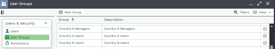 To set up the Permissions for these Groups follow the path Start > Configuration > Users & Security > Permissions