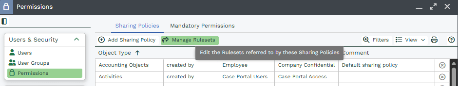 Now you have created the Ruleset and Sharing Policy, the Sharing Permissions will need updating, which can be done through a Bulk Action on the Landing Page of the specific record type: