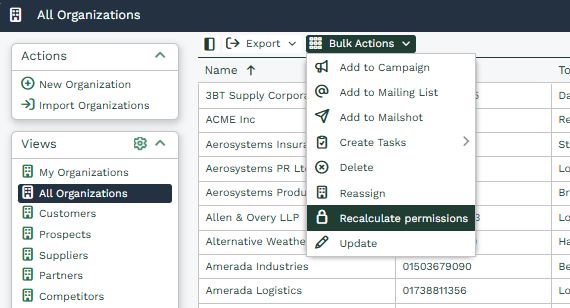 Once you Recalculate Permissions, it will ask you if you are sure you want to do this for all records that are displayed on that landing page. Like any Bulk Action you will be given the option to undo it within 30 days if you need to revert back.